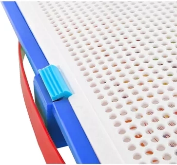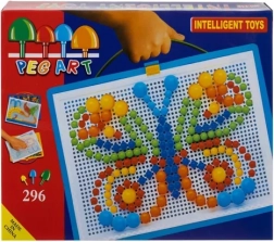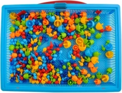 Deze creatieve mozaïek met paddenstoeltjes opent voor kinderen een bonte wereld van creëren. Van de gekleurde pinnetjes ontstaan gemakkelijk vlinders, bloemen of eigen originele patronen. De set in het praktische koffertje maakt eenvoudig meenemen en opbergen van alle onderdelen mogelijk, zodat er niets kwijt raakt en het spelplezier altijd en overal kan beginnen.