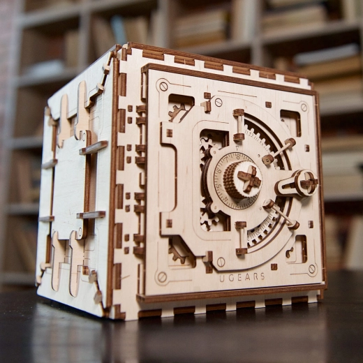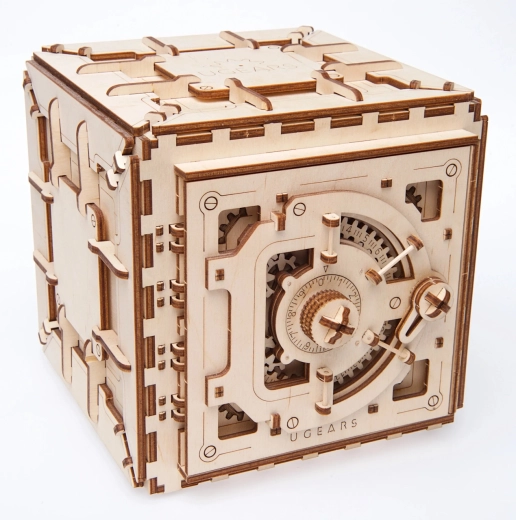 Ontdek de magie van mechanica met het houten kluismodel van UGEARS. Een volledig functionele 3D-puzzel met een cijfercombinatieslot, 179 onderdelen zonder lijm en een soepel mechanisme – perfect voor liefhebbers van techniek en design. Stel je eigen driecijferige code in en berg kleine kostbaarheden veilig op in een elegante houten behuizing.