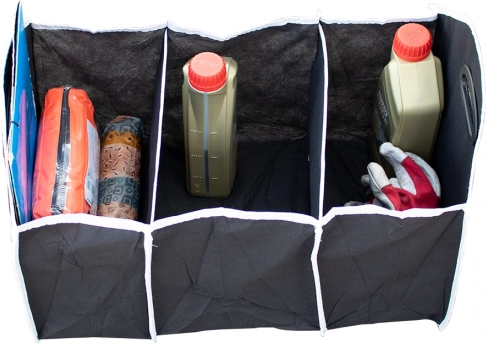 Houd uw auto altijd perfect opgeruimd met deze opvouwbare organizer. Uitstekend geschikt voor het organiseren van ondergoed, schoonmaakmiddelen, kleding, boodschappen en andere noodzakelijke accessoires in de kofferbak.