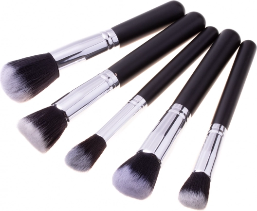 De set bevat verschillende soorten kwasten die voldoen aan de behoeften voor compacte, vloeibare en crèmige producten.