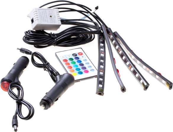 Met LED-strips creëert u een originele interieurverlichting voor elke auto. Dankzij de LED-verlichting kunt u een uniek interieur in uw voertuig realiseren. De strips helpen u snel en eenvoudig een kleine maar belangrijke verandering in uw auto aan te brengen. U kunt de strips boven de instapdrempels, onder de stoelen, onder de deuren, in het dashboard, in de kofferbak enz. plakken. De LED-strips worden bevestigd met dubbelzijdige 3M-tape, waardoor de installatie zeer eenvoudig is. De strips zijn waterdicht, dus u hoeft zich geen zorgen te maken over vocht. Door de lichtintensiteit in te stellen, bepaalt u zelf welk gedeelte van het interieur u wilt verlichten. Voeding rechtstreeks via de sigarettenaansteker van de auto – 12 V. Snel en eenvoudig uit te schakelen dankzij de speciale verlichte ON/OFF-knop op de 12V-stekker van de aansteker.