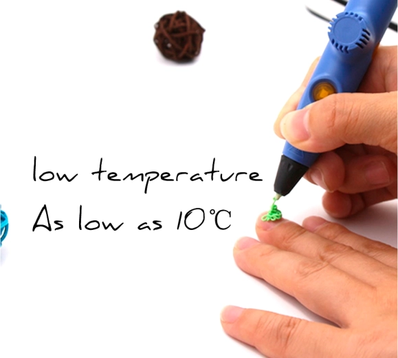 We bieden u een uiterst eenvoudig, zelfs intuïtief te gebruiken 3D-tekenpen. Hij kenmerkt zich door een laag gewicht en een ergonomische vorm. Hij zorgt voor veel plezier voor u en uw kind en stimuleert tegelijkertijd creativiteit en fijne motoriek. Als vulling gebruikt hij PCL-filament – een materiaal dat smelt bij een zeer lage temperatuur (50–60 graden) en geen giftige of schadelijke dampen afgeeft. De pen wordt gevoed via een praktische USB-kabel. Een andere onmiskenbare voordeel van onze pen is de zeer lage temperatuur van het vloeibare filament, waardoor hij vooral voor kleine kinderen veilig is.