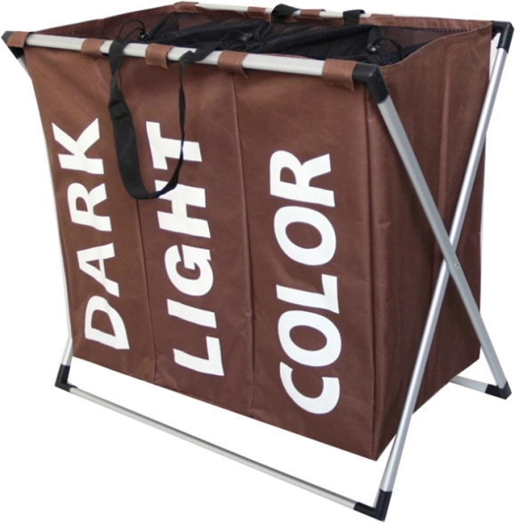 Deze driedubbele wasmand beschikt over drie gescheiden compartimenten, die elk zijn gelabeld voor eenvoudige organisatie. Het materiaal van de compartimenten is waterbestendig, waardoor je vochtig wasgoed kunt opbergen zonder het risico andere kledingstukken te beschadigen.