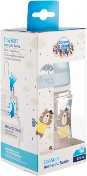 De ergonomische antikrampjesfles EasyStart uit de exclusieve collectie BONJOUR, PARIS! met een inhoud van 120 ml, die zeer gemakkelijk te vullen, te reinigen en vast te houden is tijdens het voeden. Gemaakt voor het blije buikje van je baby. Meer informatie over de BONJOUR, PARIS!-flessen vind je in deze video: https://www.youtube.com/watch?v=fBLIQfbLKoQ Het brede halsontwerp vergemakkelijkt het vullen en reinigen, terwijl de duidelijke maatschaal helpt de door het kind gedronken hoeveelheid te controleren. Bevat een antikrampjesspeen 0m+, waarvan de vorm sterk lijkt op de tepel van de moeder. Zo kan het kind zowel aan de borst als uit de fles gevoed worden. In de met een afdichtschijf afgesloten fles kun je voeding invriezen of vervoeren zonder risico op morsen. De fles is BPA-vrij. Vervangende spenen en tuitjes vind je in de sectie spenen en tuitjes. Schattige print in Franse stijl – een uniek design. Het nieuwe antikrampjesventiel voorkomt de vorming van luchtbellen in de melk, minimaliseert koliek, luchtinslikken en gasophoping. De speen lijkt qua vorm op de tepel van de moeder – dit maakt het combineren van borstvoeding en flesvoeding makkelijker. De brede opening vergemakkelijkt het vullen van de fles en de nauwkeurige schaal maakt het eenvoudig om de gedronken hoeveelheid af te lezen. Hoogwaardig polypropyleen (PP) en productie op Japanse machines garanderen hoge kwaliteit, veiligheid en transparantie van de fles. De fles is gemaakt in de EU. Gebruiksaanwijzing: Om hygiënische redenen alle gedemonteerde onderdelen van de fles en de speen vóór het eerste gebruik grondig wassen en vervolgens 5 minuten in kokend water steriliseren. Was vóór elk gebruik. Langdurig uitkoken of hard water kan kalkaanslag veroorzaken. Verwijder na gebruik voedselresten uit fles en speen, spoel, was en steriliseer vervolgens in een stoom-/elektrische sterilisator of in kokend water. We raden af om de fles en speen in de vaatwasser te reinigen, omdat de gebruikte afwasmiddelen het product kunnen beschadigen. Gebruik geen chemische desinfectiemiddelen. Controleer het product vóór elk gebruik. Besteed extra aandacht aan de speen zodra de eerste tandjes van het kind verschijnen. Test de speen door deze in alle richtingen goed uit te rekken. Gebruik het product niet meer bij de eerste tekenen van slijtage of beschadiging; vervang het door een nieuw exemplaar. Draai de schroefdop niet te strak aan, anders kan de speen niet goed ontluchten. Controleer of er geen voeding lekt onder de schroefdop. Prik geen extra gaten in de speen en vergroot ze niet – dit kan de speen beschadigen. Als je voeding in de magnetron opwarmt, vergeet dan niet dat de fles geopend moet zijn. Wees extra voorzichtig bij het opwarmen in de magnetron. Roer de opgewarmde voeding altijd grondig door en controleer de temperatuur vóór het voeren. Laat de speen niet in direct zonlicht, in de buurt van een warmtebron of langer dan aanbevolen in sterilisatieoplossingen – dit kan de speen verzwakken. Om hygiënische en veiligheidsredenen adviseren we de speen elke 3 maanden te vervangen. Belangrijk! Voor de veiligheid en gezondheid van je kind! Gebruik alleen onder direct toezicht van een volwassene. Gebruik de speen nooit als fopspeen. Langdurig en regelmatig zuigen van vloeistoffen kan tandglazuurbeschadiging bij het kind veroorzaken. Controleer altijd de temperatuur van de voeding. Dit product is geen speelgoed. Bewaar alle onderdelen van het product buiten het bereik van kinderen. De babyfles voldoet aan de vereisten van: Verordening (EG) nr. 1935/2004 van het Europees Parlement en de Raad – algemene eisen voor materialen en voorwerpen bestemd om met levensmiddelen in contact te komen. Verordening (EU) nr. 10/2011 inzake materialen en voorwerpen van kunststof bestemd om met levensmiddelen in contact te komen. EN 14350-1 – Producten voor de verzorging van kinderen – Drinkuitrusting – Deel 1: Algemene en mechanische eisen en beproevingen. EN 14350-2 – Producten voor de verzorging van kinderen – Drinkuitrusting – Deel 2: Chemische eisen en beproevingen.