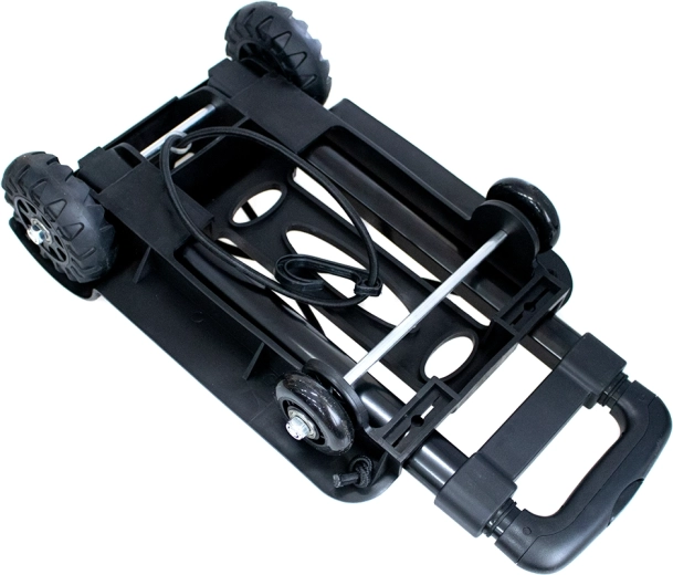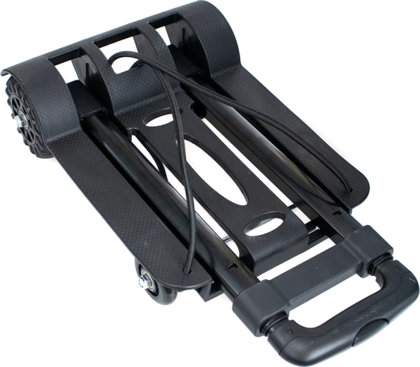 De belangrijkste eigenschap van deze kar is de speciale telescopische constructie, die het mogelijk maakt hem in compacte afmetingen op te vouwen. In opgevouwen toestand meet hij slechts 45 cm x 23 cm x 8 cm, wat het opbergen en transporteren vergemakkelijkt. U kunt hem eenvoudig in de kofferbak van de auto, voorraadkast of elders opbergen.