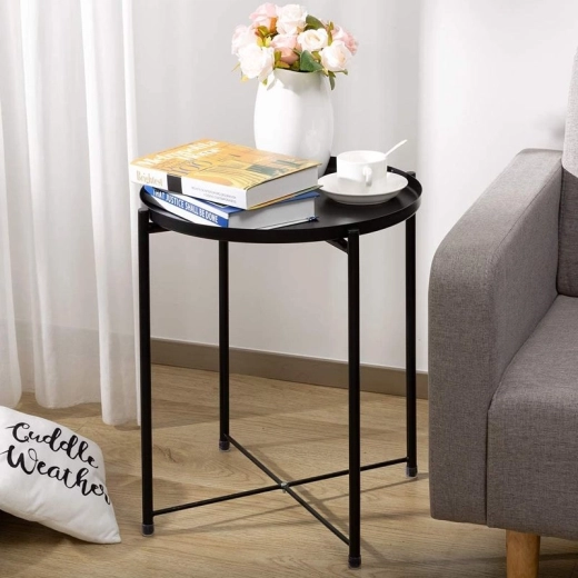 De praktische bijzettafel is ideaal voor een koffiepauze in de woonkamer of in de tuin. Minimalistisch afgewerkt en passend bij moderne interieurs in loftstijl. De ronde metalen tafel is ideaal voor de woonkamer, slaapkamer, badkamer en ook voor op het terras, balkon of in de tuin.
