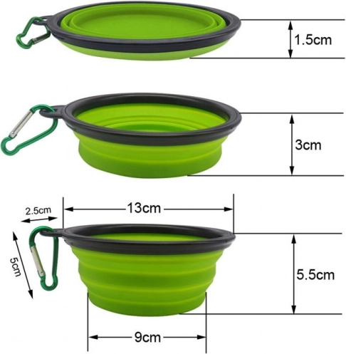 De opvouwbare siliconen reisvoerbak is ideaal voor actieve mensen die met hun hond reizen. Hij is gemaakt van hoogwaardige, hittebestendige siliconen. In opgevouwen toestand neemt de bak zeer weinig ruimte in. De bak wordt geleverd met een karabijnhaak, zodat je hem aan een broeklus of rugzak kunt bevestigen.