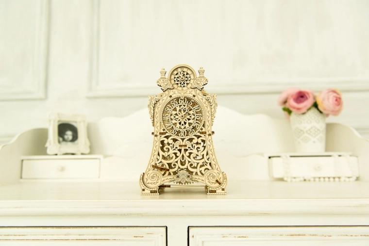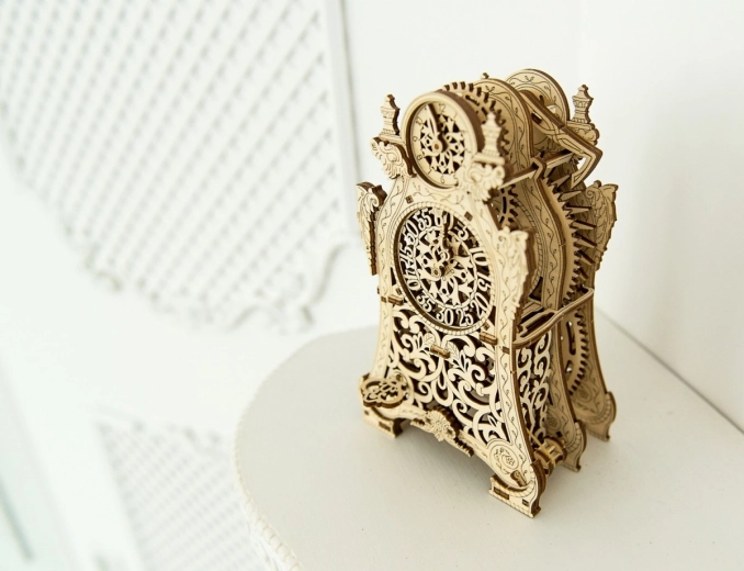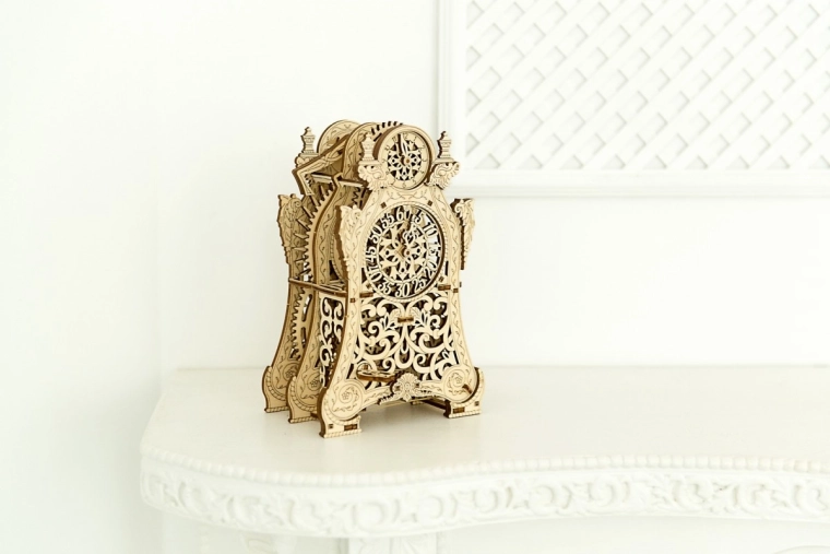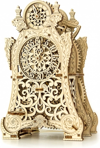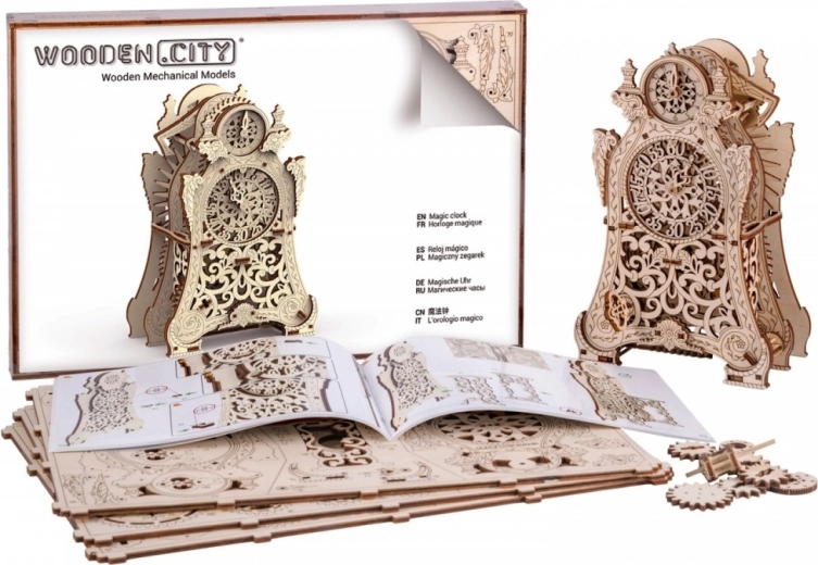 De Magische klok van Wooden City is niet alleen een mechanisch model, maar ook een kunstwerk. Deze 3D-puzzel laat je niet alleen bouwen, maar ook genieten van de fascinerende beweging van het klokmechanisme, dat werkt dankzij een slinger en tandwielen. Met twee wijzerplaten – één voor uren en één voor minuten – kun je het verstrijken van de tijd volgen in een betoverende sfeer.