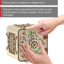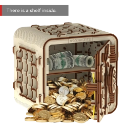 De 3D-puzzelkluis van Wooden City is het ideale cadeau voor liefhebbers van puzzels en prachtig design. Dit functionele model bootst het mechanisme van een bankkluis na met een driecijferige combinatie die je op elk moment kunt wijzigen. De kluis bevat ook een geheime functie die helpt als je de code bent vergeten. Het uiterlijk wordt versterkt door een handgreep voor gemakkelijk dragen en een schapruimte binnenin.