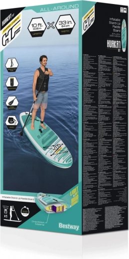 Ontdek relaxed bewegen op het water met het opblaasbare paddleboard BESTWAY HUAKA'I 10' met afmetingen 305 × 84 × 15 cm. De stabiele allround vorm, de duurzame Tritech- en Drop Stitch-constructie, het hoge draagvermogen van 130 kg en de complete uitrusting inclusief een verstelbare peddel, handpomp, leash, vin, rugzak en reparatieset maken van dit SUP-board een uitstekende keuze voor recreatie, fitness en langere tochten.