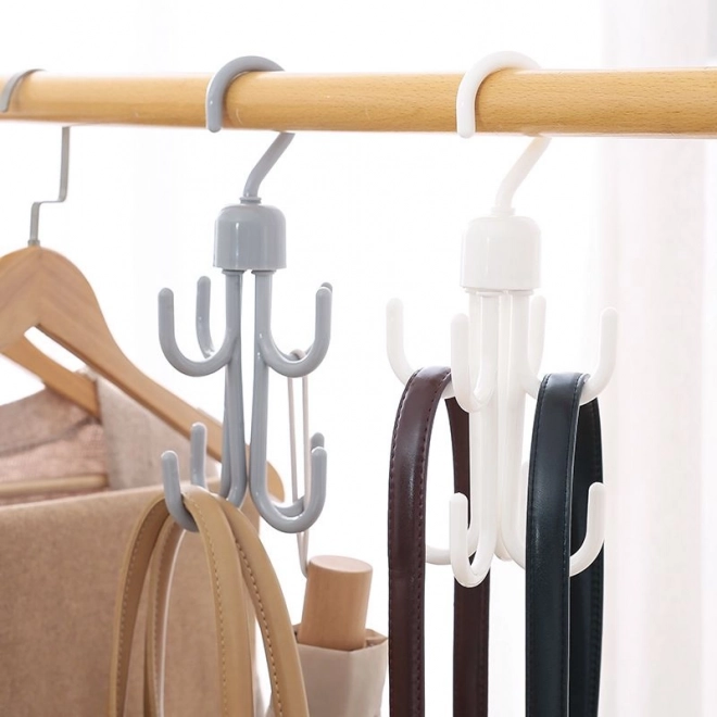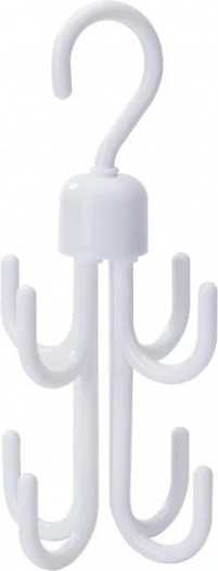 De hanger bespaart ruimte in de kast en maakt het mogelijk om sjaals, stropdassen of riemen op één plek op te bergen.