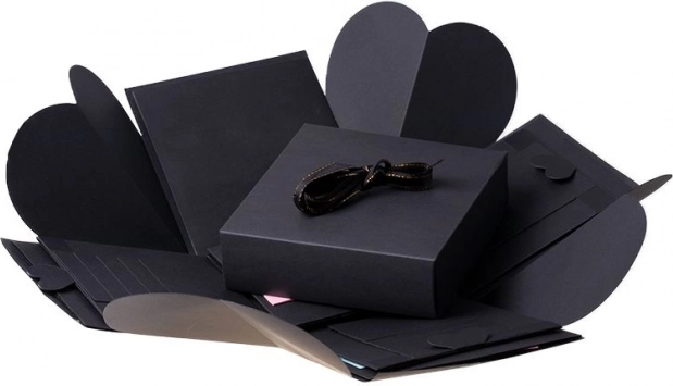 Verras je dierbaren met een uniek cadeau in de vorm van een zwarte explosie cadeauverpakking. Deze doos is een perfecte verrassing voor een bruiloft, Valentijnsdag, verloving, verjaardag of elke andere feestelijke gelegenheid. In het kleinste doosje kun je een sieraad, horloge of een ander klein geschenk plaatsen. Versier de binnenkant met foto’s, groeten of wat je maar bedenkt, en maak van dit cadeau iets onvergetelijks.