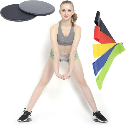 Glijdende schijven + 5 stuks oefenbanden – zwart