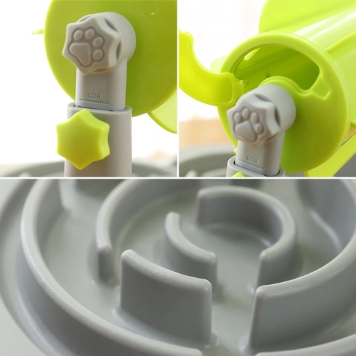 De voerbak die het eten vertraagt en doseert helpt spijsverteringsproblemen door te snel eten te voorkomen. Hij is zo gevormd dat de eettijd van je huisdier wordt verlengd, waardoor een opgeblazen gevoel of andere spijsverteringsproblemen worden voorkomen. De bak heeft een labyrint van groeven die je huisdier uitdagen. De grootte van de geplaatste snacks verandert de moeilijkheidsgraad. De dispenser voor droogvoer stimuleert de eetlust en zorgt voor een leuke eetervaring.