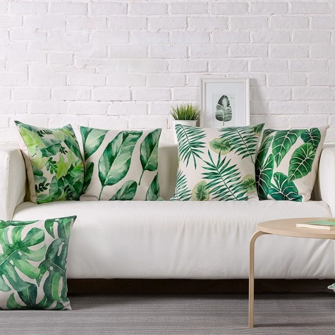 - Tijdloos design – groene bladeren op een neutrale achtergrond passen bij vele stijlen.