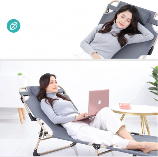 De verstelbare hoofdsteun met 4 standen maakt comfortabel lezen, relaxen en slapen mogelijk. Dankzij 8 antislippads staat het bed stabiel op verschillende vloeren. In opgevouwen toestand heeft het compacte afmetingen, zodat je het eenvoudig in een kast, auto of op kantoor kunt opbergen.