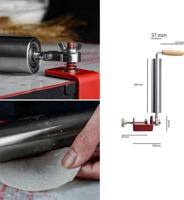 Het compacte ontwerp met de mogelijkheid om aan de rand van de tafel te bevestigen zorgt ervoor dat de roller op zijn plaats blijft en maakt nauwkeurig en gelijkmatig rollen van het deeg mogelijk.