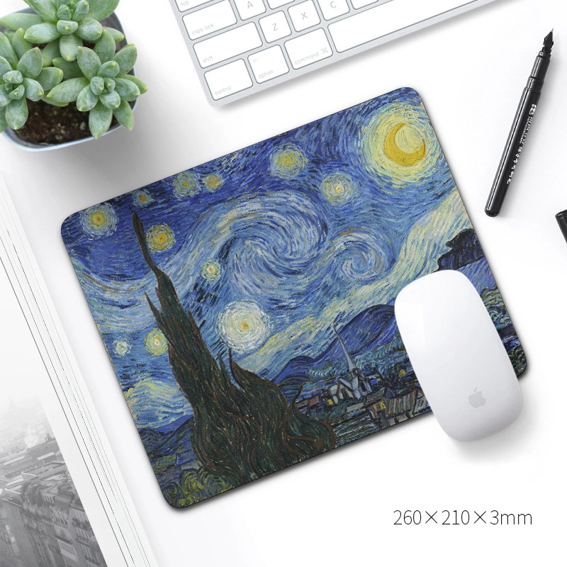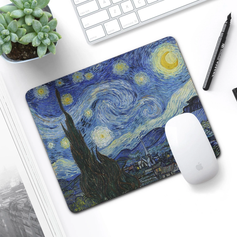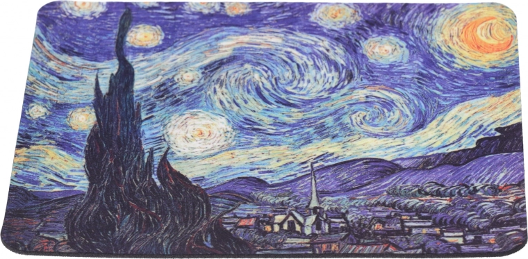 Geef je bureau een upgrade met iconische kunst en profiteer tegelijk van topfunctionaliteit. Het slanke profiel en het gladde textieloppervlak bieden precieze muisaansturing, terwijl de rubberen antislipbasis de mat stevig op zijn plaats houdt, zelfs bij snelle bewegingen. De duurzame kleurrijke print van Sterrennacht laat elke werkplek of gamehoek stralen.