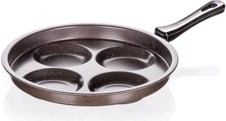 Dankzij de vier ronde secties bereid je in één keer gelijkmatige porties – niet alleen pannenkoekjes, maar ook eieren, aardappelpannenkoekjes of mini-gebakjes. De ergonomische kunststof handgreep zorgt voor een veilige en comfortabele grip en het praktische oog maakt ophangen mogelijk.