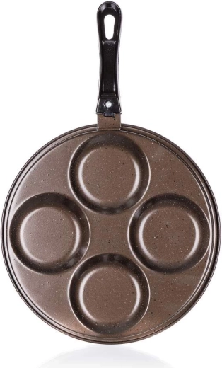 Ontdek de praktische pannenkoekenpan met een diameter van 24 cm en vier vormen, die dankzij het GRANITE-oppervlak met antiaanbaklaag zorgt voor eenvoudig omdraaien en minimaal gebruik van olie. Gelijke warmteverdeling, een comfortabele handgreep met ophangoog en eenvoudig onderhoud maken deze pan tot een ideale hulp voor perfect gevormde pannenkoekjes of eieren.