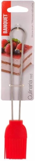 Praktische siliconen bakkwast Culinaria Red met een lengte van 20 cm, ideaal om te bestrijken tijdens bakken en grillen. Hij heeft een duurzame siliconen kop met hittebestendigheid tot 240 °C en een ergonomische handgreep van roestvrij staal voor een comfortabele grip. Dankzij de materialen is hij gemakkelijk te reinigen en geschikt voor de vaatwasser. Het stijlvolle rode design past in elke keuken.