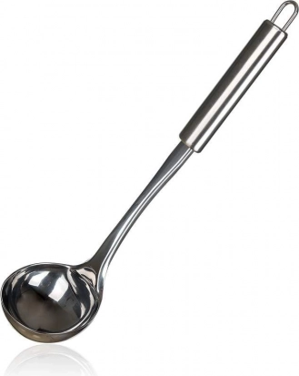 Praktische opscheplepel BANQUET AKCENT met afmetingen 31 × 9 cm van hoogwaardig roestvrij staal, ideaal voor professionele keukens en huishoudens. Biedt een duurzame uitvoering, is onderhoudsvriendelijk en geschikt voor de vaatwasser. Dankzij het ophangoog heb je hem altijd binnen handbereik.