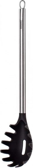 Accent spaghettilepel 32 cm, materiaal - nylon, handgreep van roestvrij staal 403, praktisch oog om op te hangen. Het keukengerei ligt prettig in de hand en is vaatwasmachinebestendig.