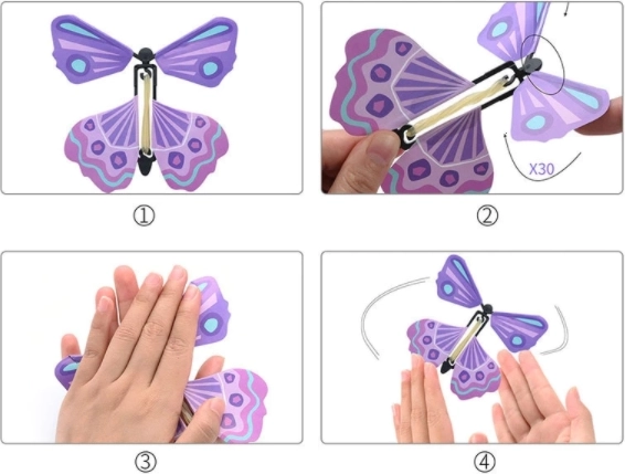 De magische vliegende vlinder is een fascinerend speelgoed voor kinderen dat in elk moment plezier en verrassingen brengt. Plaats hem in een verjaardagskaart, boek, brief of uitnodiging en kijk hoe een verraste glimlach het gezicht van de ontvanger verlicht. Bij het openen verschijnt er een prachtige vliegende vlinder.