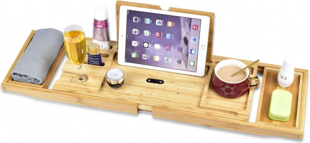 Met een houder voor een tablet en een wijnglashouder kunt u volledig ontspannen. Het rek kan een boek, badproducten of een kaars bevatten.