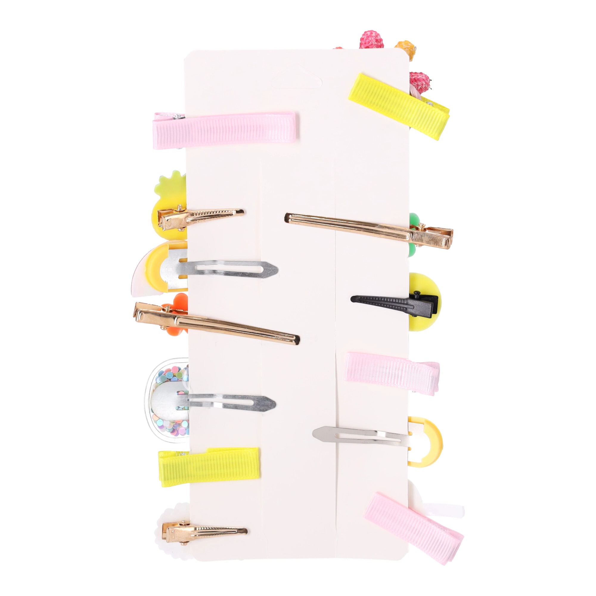 Deze kleurrijke collectie omvat een mix van snap- en lint-/alligatorclips met subtiele versieringen in pasteltinten. Dankzij de lichte materialen en de stevige grip zijn de speldjes comfortabel voor de hele dag en geschikt voor verschillende haarlengtes en -types.