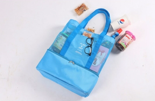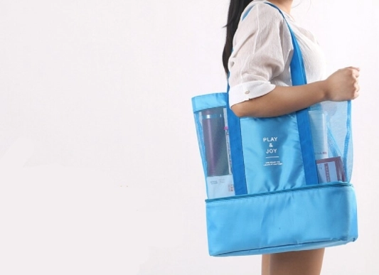Een picknicktas die ideaal is voor zomerse uitstapjes naar de bergen, naar zee en voor picknicks. De tas is opvouwbaar en functioneel; er passen zeker strandlakens, kleding en kinderspeelgoed in. In het onderste deel van de tas zit een thermovak waarin je een lunchbox, thermosfles, plastic voedselbakjes en allerlei soorten drankjes kunt opbergen, terwijl hun ideale kwaliteit en temperatuur behouden blijven. De tas is gemaakt van licht materiaal, waardoor hij tot kleine afmetingen kan worden opgevouwen