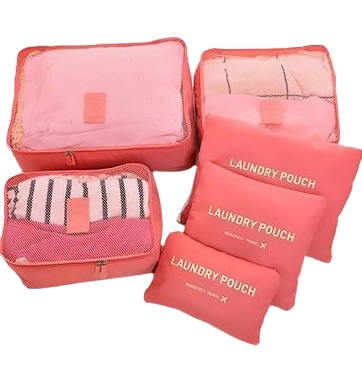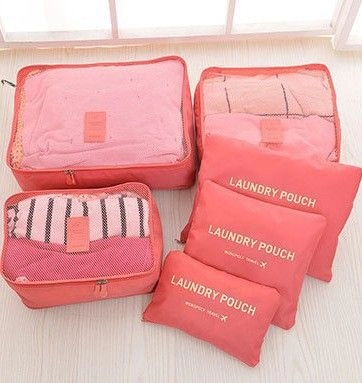 Zes praktische onderdelen in verschillende maten voor kleding, ondergoed, accessoires en cosmetica. Ideaal voor op reis en voor thuis organiseren.