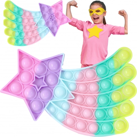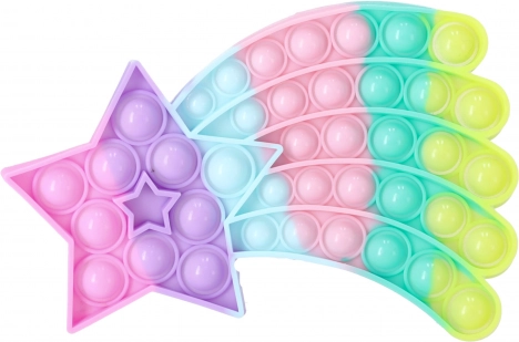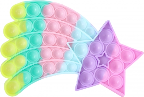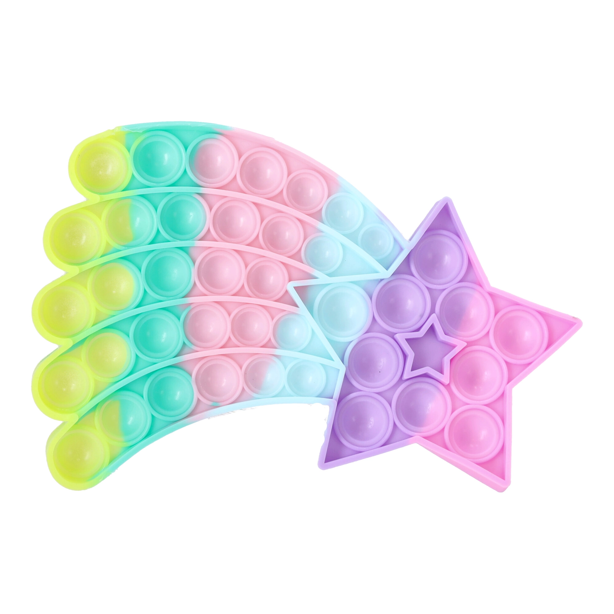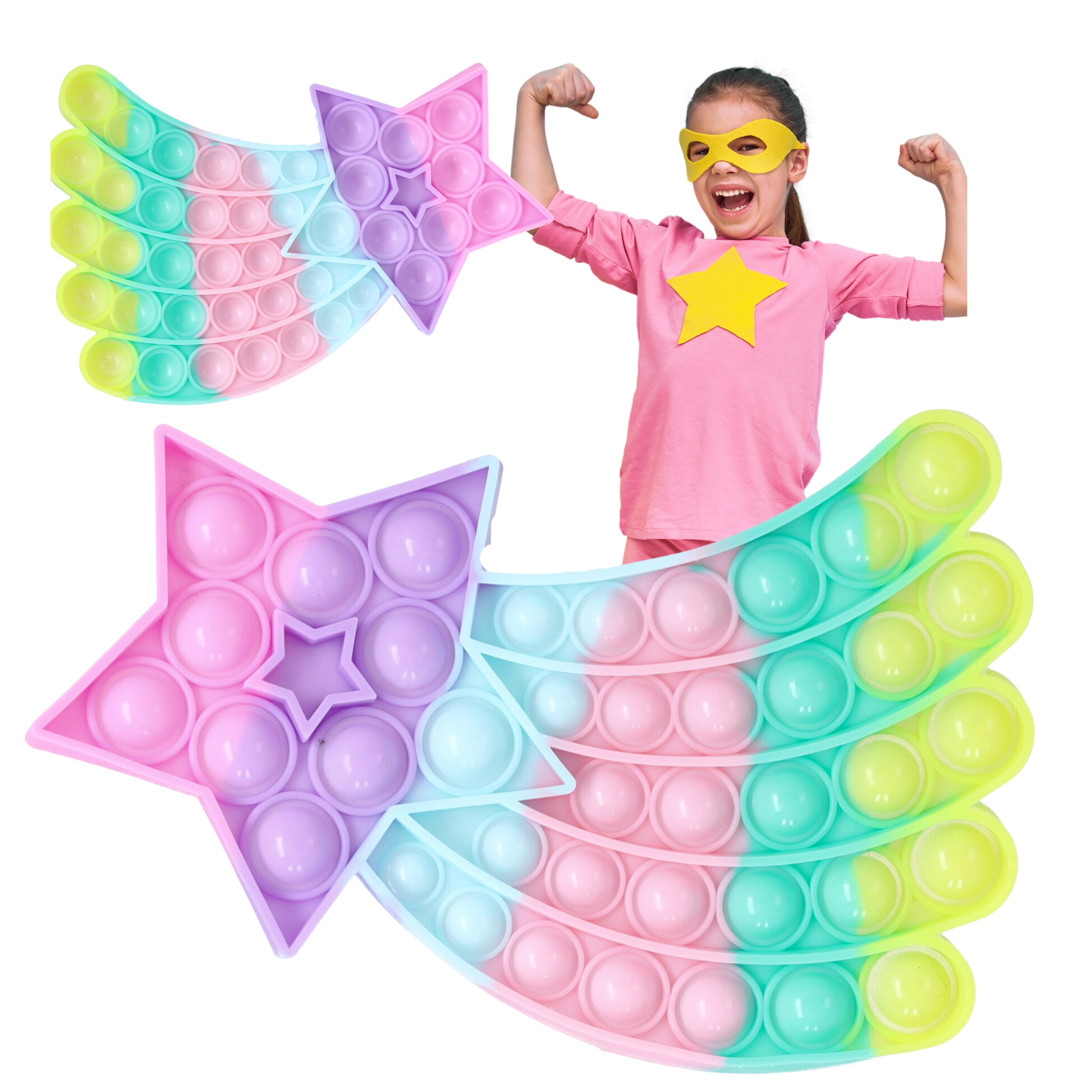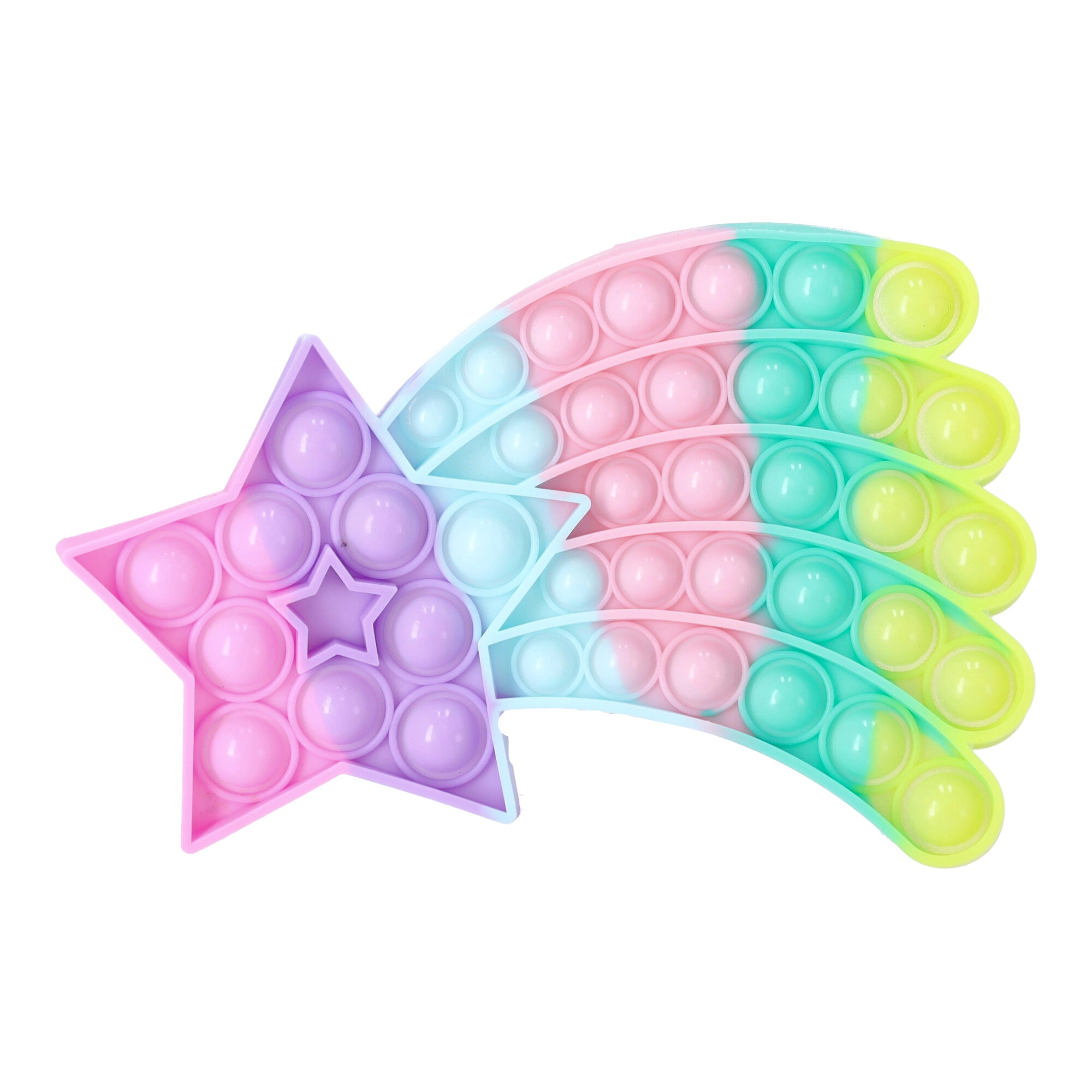 De populaire antistress Push Pop Bubble-speelgoed in de vorm van een vallende ster biedt directe ontspanning en zintuiglijke stimulatie. Druk op de bubbels, draai om en speel opnieuw – ideaal voor kinderen vanaf 2 jaar en volwassenen. Gemaakt van duurzaam silicone, gemakkelijk schoon te maken en waterbestendig, zodat je het altijd bij de hand hebt voor stressvermindering en betere concentratie.