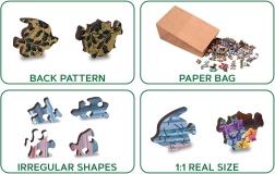 Ontdek de charme van houten puzzels van WOODEN CITY, die je verrassen met hun speciaal uitgesneden stukjes. Deze stukjes stellen vaak dieren, gebouwen of voorwerpen voor, wat een extra dimensie aan plezier en uitdaging toevoegt. Dankzij laser-gesneden details blinkt elk stukje uit in precisie en gladde, splintervrije randen.