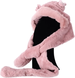 Schattige en praktische 3-in-1 kindermuts die capuchon, sjaal en handschoenen in één combineert. Gemaakt van zacht pluche materiaal houdt het kinderen warm tijdens winterse wandelingen, op de ski’s en tijdens het schaatsen. Ideaal voor meisjes van 2–12 jaar.