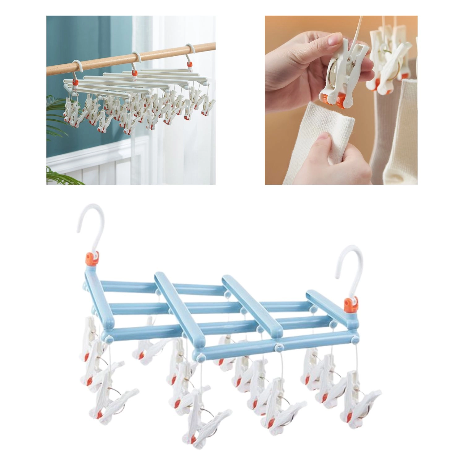 Op zoek naar een slimme oplossing voor het drogen van klein wasgoed? Deze opvouwbare hangdroger met 14 knijpers is ideaal voor sokken, lingerie en andere kleine stukken. Licht en duurzaam plastic met sneldrogend oppervlak zorgt voor een lange levensduur en eenvoudig gebruik.