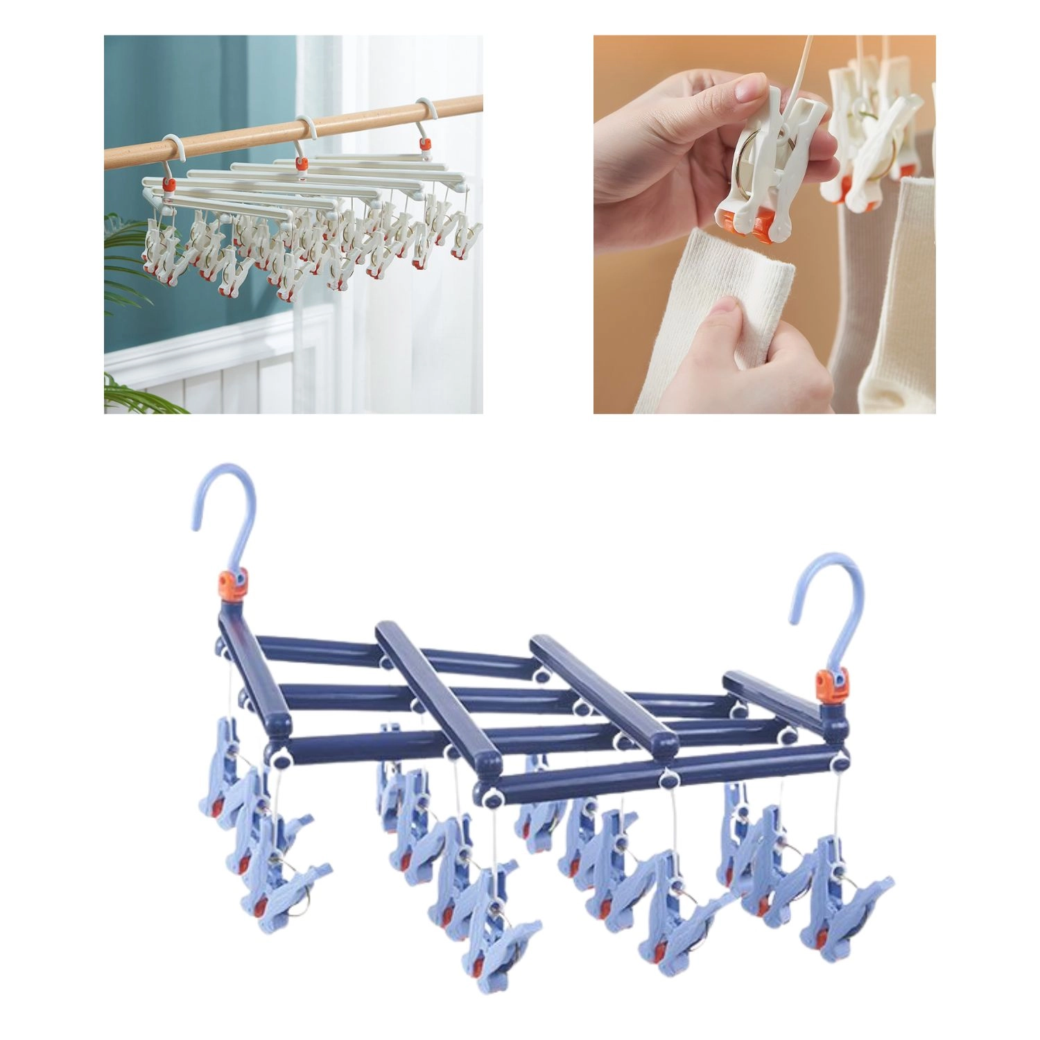 Ergonomische clips met perforatie houden sokken, ondergoed en andere kleine stukken stevig vast zonder vezels te beschadigen of te laten wegglijden.