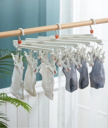 Praktische en duurzame opvouwbare washanger met 14 knijpers bespaart ruimte en zorgt voor snel drogen van klein wasgoed. Ideaal voor sokken, ondergoed en accessoires, met dubbele haken voor stabiele ophanging. Biedt een opvouwbare constructie, een draaibare haak met vergrendeling en ergonomische clips voor een veilige bevestiging.