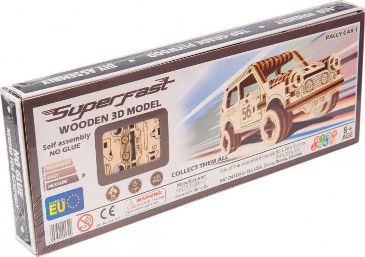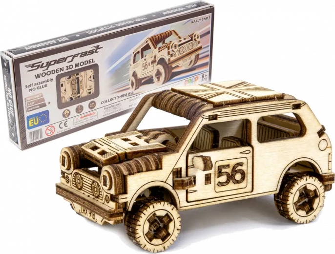 Het model Rally Car 1 is eenvoudig te monteren en daarmee ideaal voor zowel beginners als een geweldig begin van een nieuwe hobby, maar ook voor gevorderden in het bouwen van houten modellen.