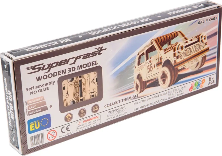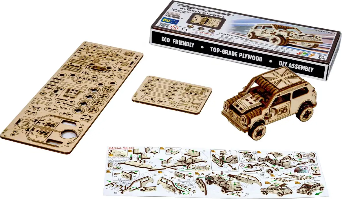 Dit mechanische 3D-model van een rallyauto is een perfecte keuze voor iedereen die van knutselen houdt. Dankzij de precieze lasersnede uit berkenmultiplex passen de onderdelen soepel in elkaar en geniet je van ontspanning en creativiteitsontwikkeling tijdens het bouwen zonder lijm. Het voltooide model valt op door realistische details, van de radiatorgrille tot het nummer op de deuren, en wordt een stijlvolle blikvanger op een plank of bureau.