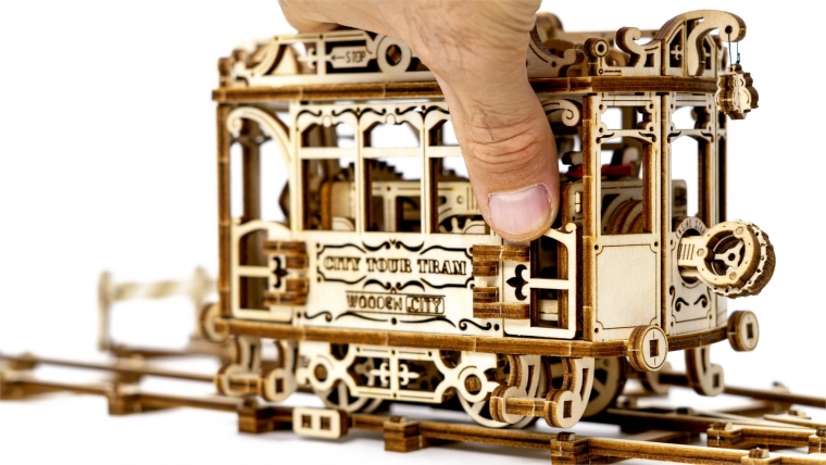 houten 3D-puzzel tram met rails WOODEN CITY (273 onderdelen)