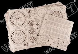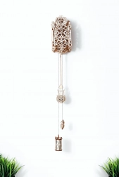 Het model is gemaakt van een natuurlijk materiaal: hoogwaardig berkenmultiplex. Het grote voordeel is dat het zonder lijm of gereedschap kan worden gemonteerd. De klok werkt na het opwinden en geeft tot 12 uur een aangenaam tikkend geluid.