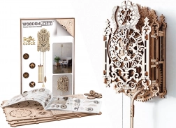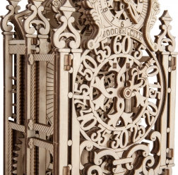 De houten 3D-puzzel WOODEN CITY Koninklijke klok is een prachtig meesterwerk met geavanceerde details en elegante lijnen. Een ideaal cadeau voor liefhebbers van schoonheid en verrassingen. Het model is geïnspireerd op de rococostijl en bevat gedetailleerde uitgesneden verstrengelde patronen. De Koninklijke klok is ontworpen om te functioneren als een echte tijdmeter met een aanpasbare slingerperiode, die afhangt van het aantal ingelegde munten.