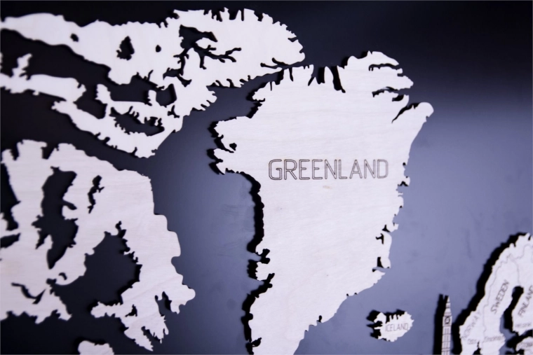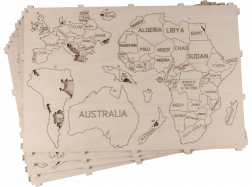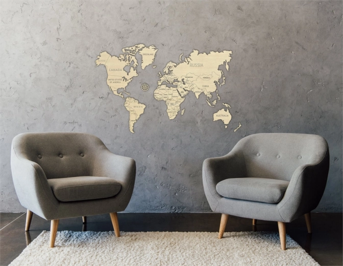 De kaart is uitgesneden uit berkenmultiplex, wat een natuurlijke en elegante uitstraling aan het interieur geeft.