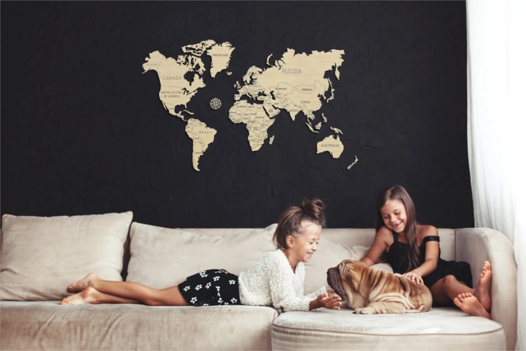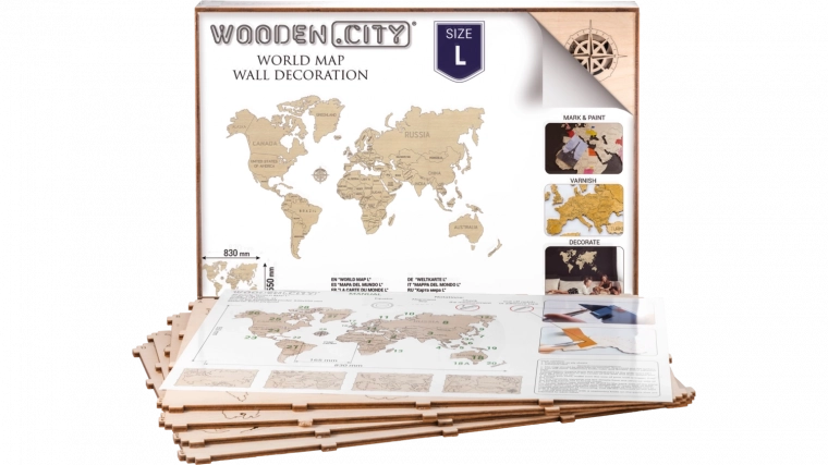 Bevestig het aan de muur en gebruik het als een interactieve manier om uw reisavonturen vast te leggen - voeg spelden toe of kleur bezochte plaatsen. De kaart is niet alleen geschikt voor de woonkamer, maar ook voor het kantoor en andere ruimtes.