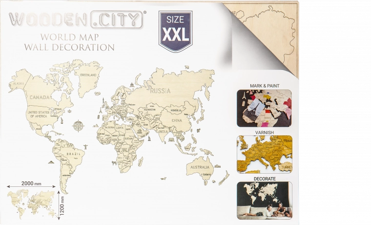 Dit product is ideaal voor gezinnen met kinderen, omdat jonge reizigers acrylverf kunnen gebruiken om bezochte plaatsen in te kleuren. De houten kaart is gemaakt van ecologische materialen en biedt een uniek ontwerp dat elke bezoeker zal aanspreken. Eenvoudige installatie zorgt ervoor dat elke muur in een mum van tijd versierd is.