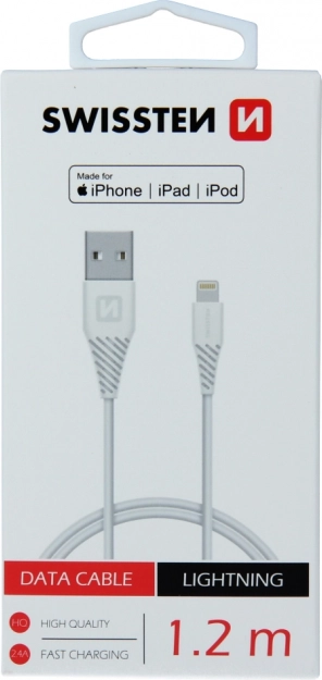 Swissten TPE-datakabel USB/LIGHTNING met MFI-certificering, lengte 1,2 m. Verpakt in Swissten retailverpakking.