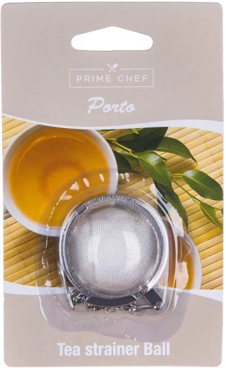 De PORTO-theezeef in de vorm van een bol met een diameter van 4,5 cm en een kettinglengte van 13,5 cm is een onmisbare helper bij het zetten van thee. Op een eenvoudige manier kunt u een kopje van uw favoriete soort kwaliteitsthee bereiden. Het zeefje neemt geen geurtjes aan, is hygiënisch en ligt prettig in de hand. Materiaal: roestvrij staal 18/8.