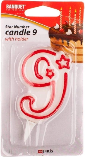 Verjaardagskaars nr. 9, inclusief plastic houdertje.