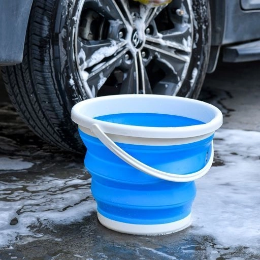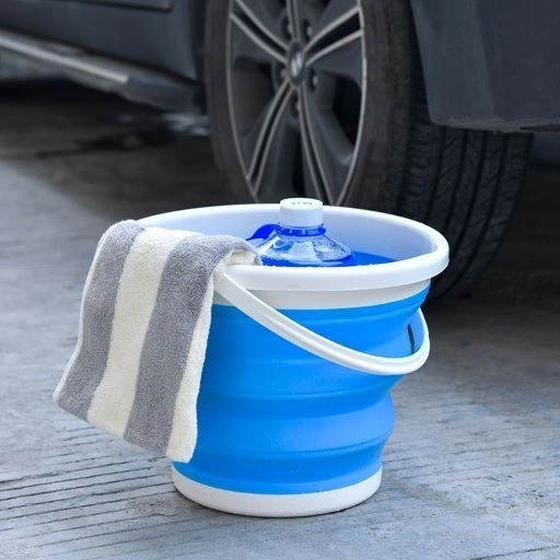 Siliconen opvouwbare emmer 5 l - blauw en wit (met deksel)